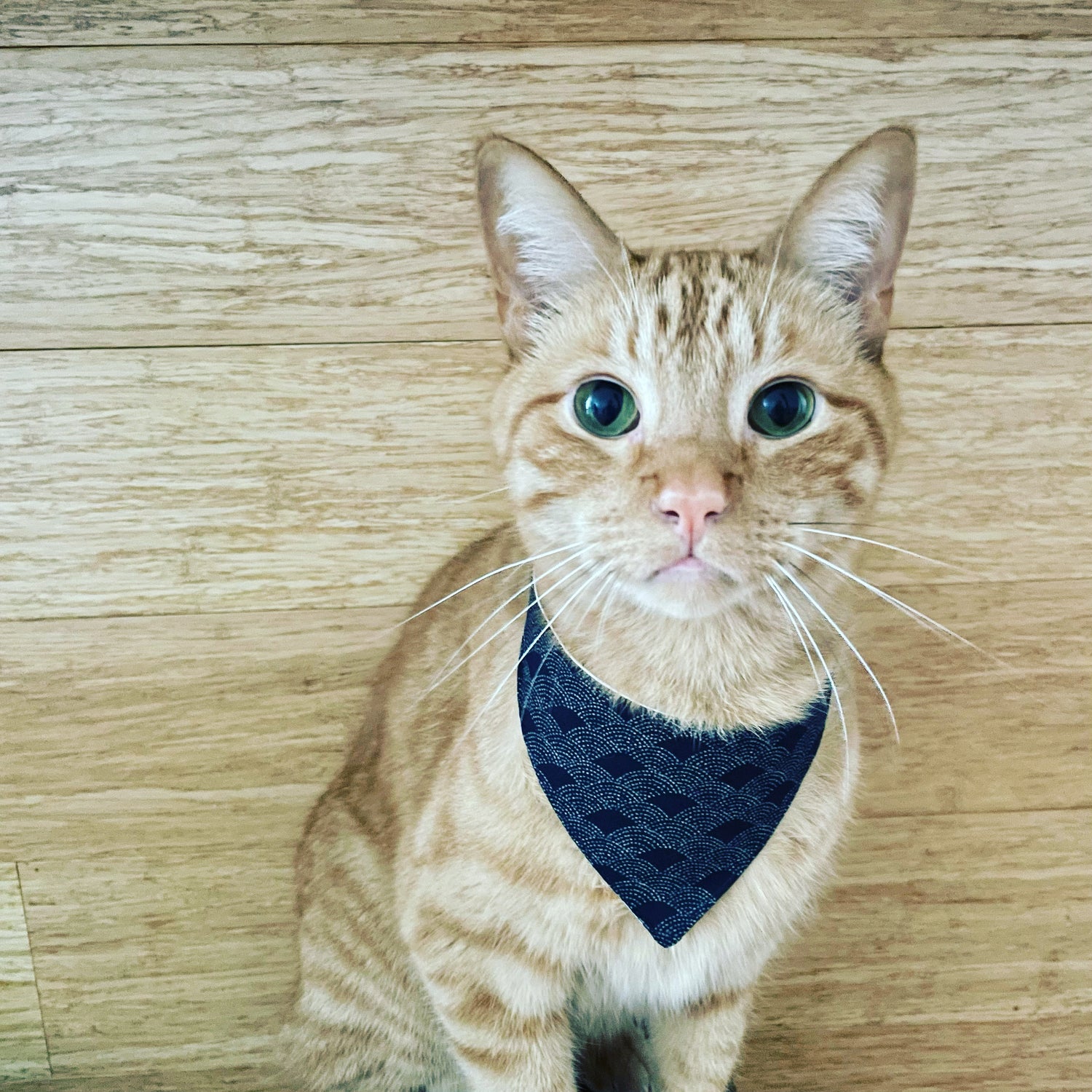 That's right, we make bandanas just for cats . Each one is cut and sewn by us. We are doing our best to use sustainability practices by cutting our hangers from cardboard boxes and using paper packaging that can be recycled.